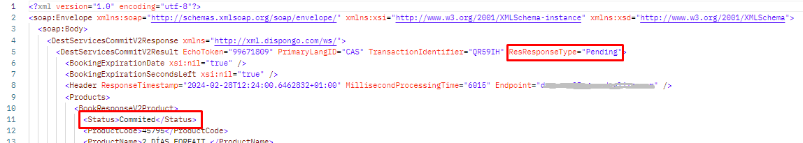obtaining a global status of the reservation ("ResResponseType") and a status of the confirmed